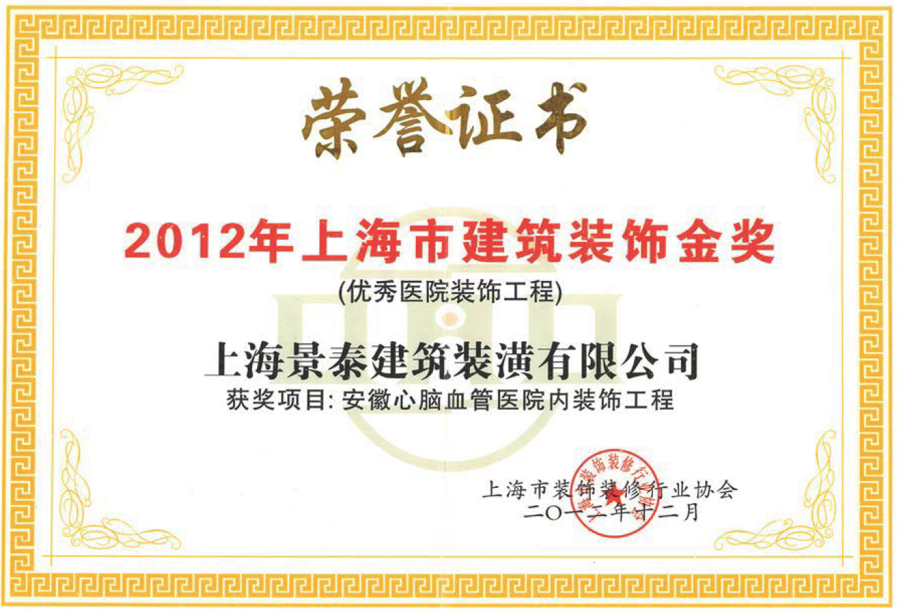 2012年上海市建築裝(zhuāng)飾金獎【優秀醫(yī)院裝(zhuāng)飾工(gōng)程】 安(ān)徽心腦血管醫(yī)院内裝(zhuāng)飾工(gōng)程